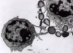 Most of the studies related to the immune system and HIV concentrate on T lymphocytes, B lymphocytes, and antigen-presenting cells. However, studies reported so far have found that NK cells can be lethally infected by HIV, and NK cell cytotoxic functions are impaired during the course of infection (Dissection). In 1989, a researcher by the name of Paolo Lusso discovered that infection with herpesvirus-6 can cause a decline in the body's natural killer cell response. This was the first time researchers have shown that natural killer cells were vulnerable to any kind of viral attack. It was also the first real evidence that infection with this herpesvirus might play a role in AIDS. In the same year, Lusso's team also showed that herpesvirus-6 attacks CD4+lymphocytes (Science News, 1993). As mentioned earlier, CD4+lymphocytes are the primary targets of HIV.
